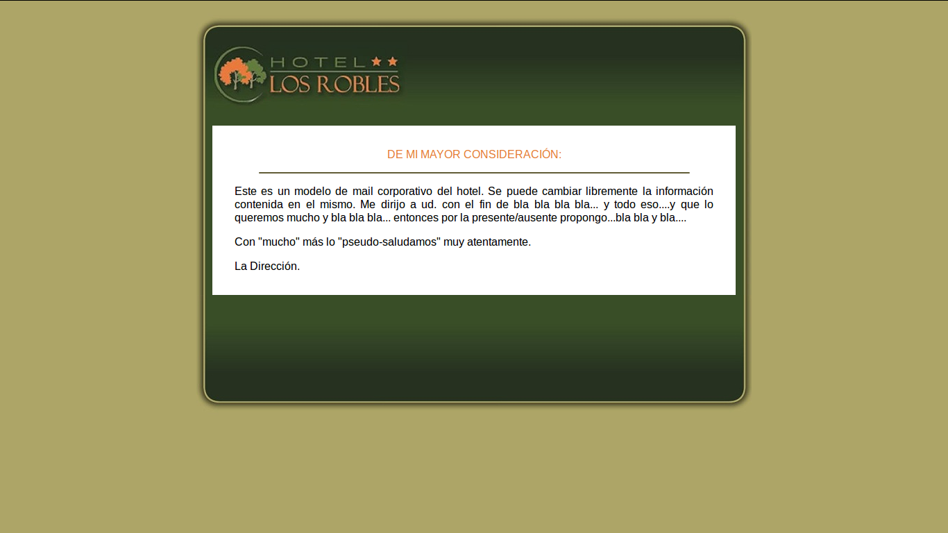 Puede ver un lindo ejemplo en este enlace: www.webmoderna.com.ar/mail/01-hotellosrobles.html